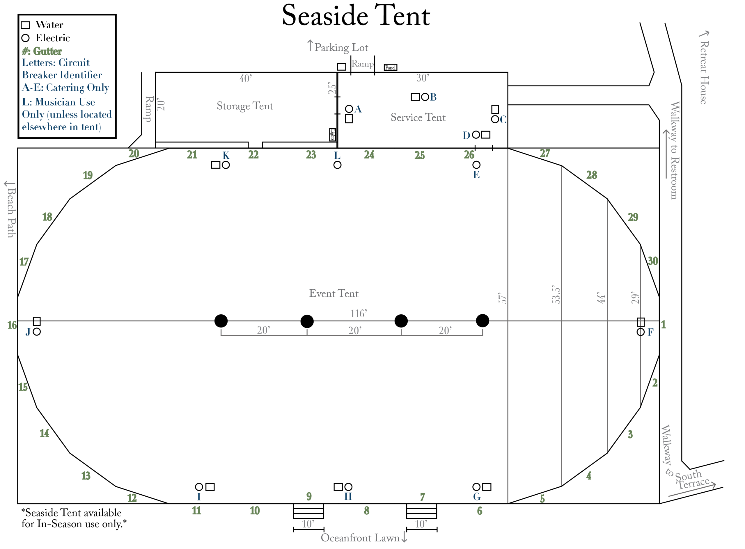 - Seaside Tent IS included in Venue Rent for all in-season reservations.